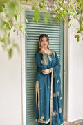 Beautifully designed outfit features a soft silk shirt adorned with heavy embroidery, offering a rich and elegant look. The matching soft silk trouser is detailed with delicate embroidery, adding balance and sophistication to the ensemble. Completing the look is a heavily embroidered dupatta that enhances the outfit’s luxurious appeal.