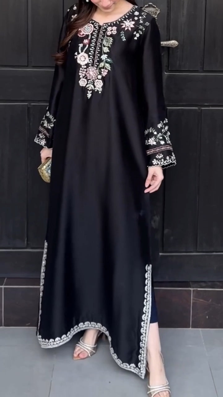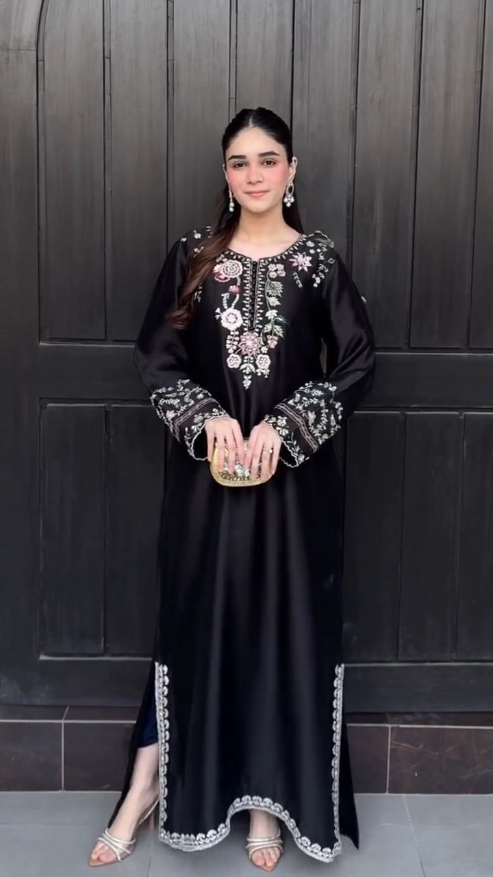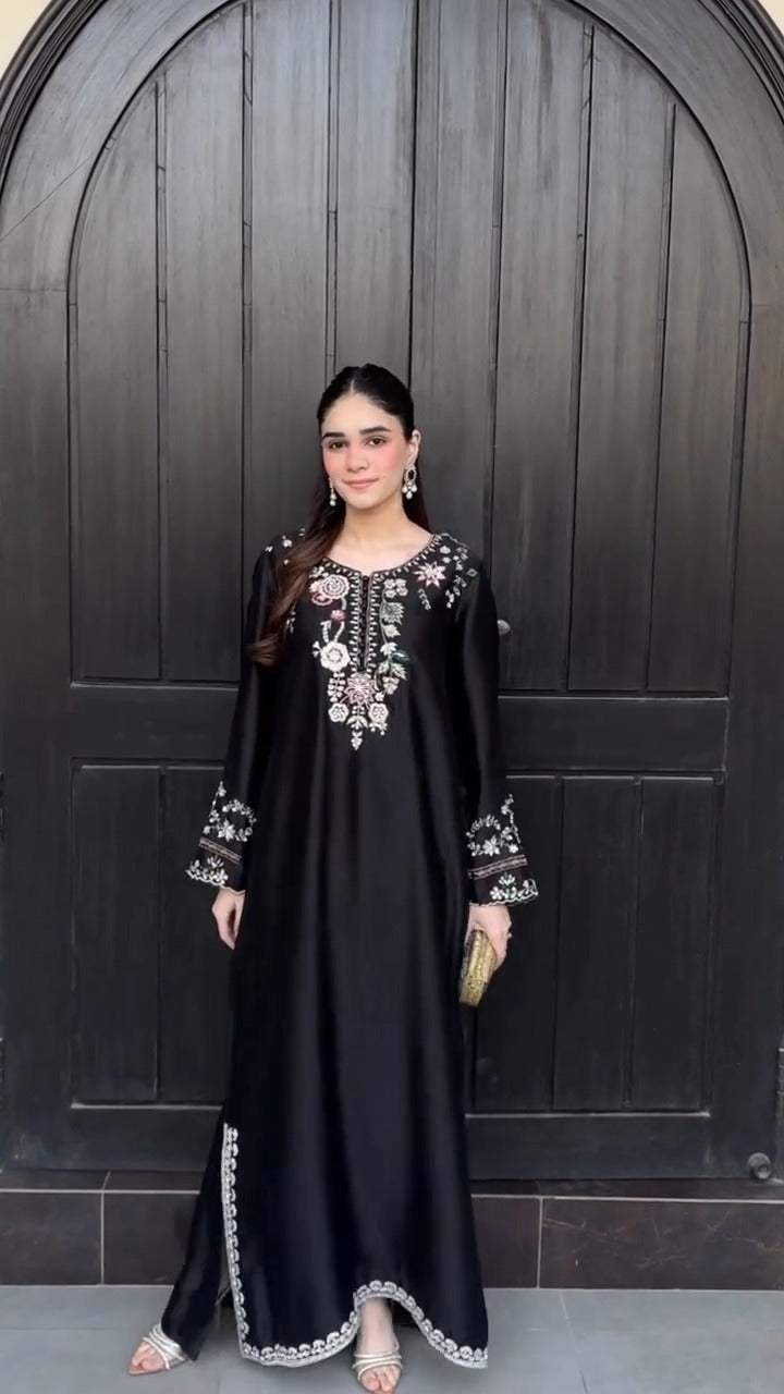 Elevate your style with this beautifully crafted Soft Silk Embroidered Dress.